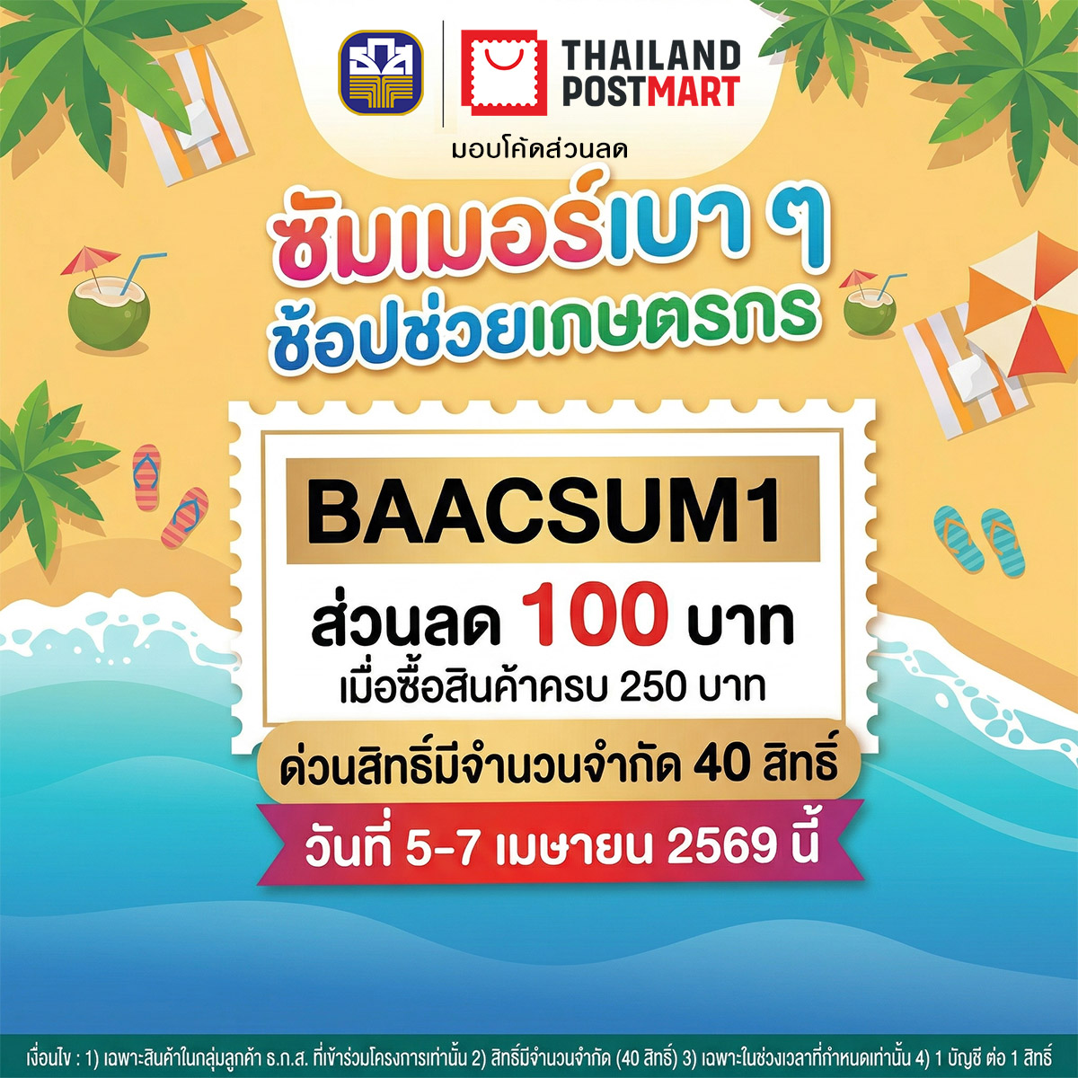 [Promotion] ThailandPostMart Code ส่วนลด BAACSUM1 ลด 100 บาท เมื่อซื้อสินค้าที่ร่วมรายการครบ 250 บาท